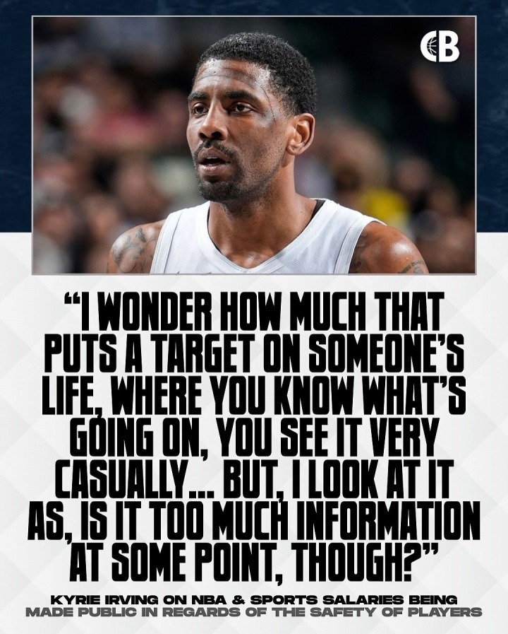 欧文重申NBA薪资不该被公开!称危及球员生命安全 球员隐私不应被暴露